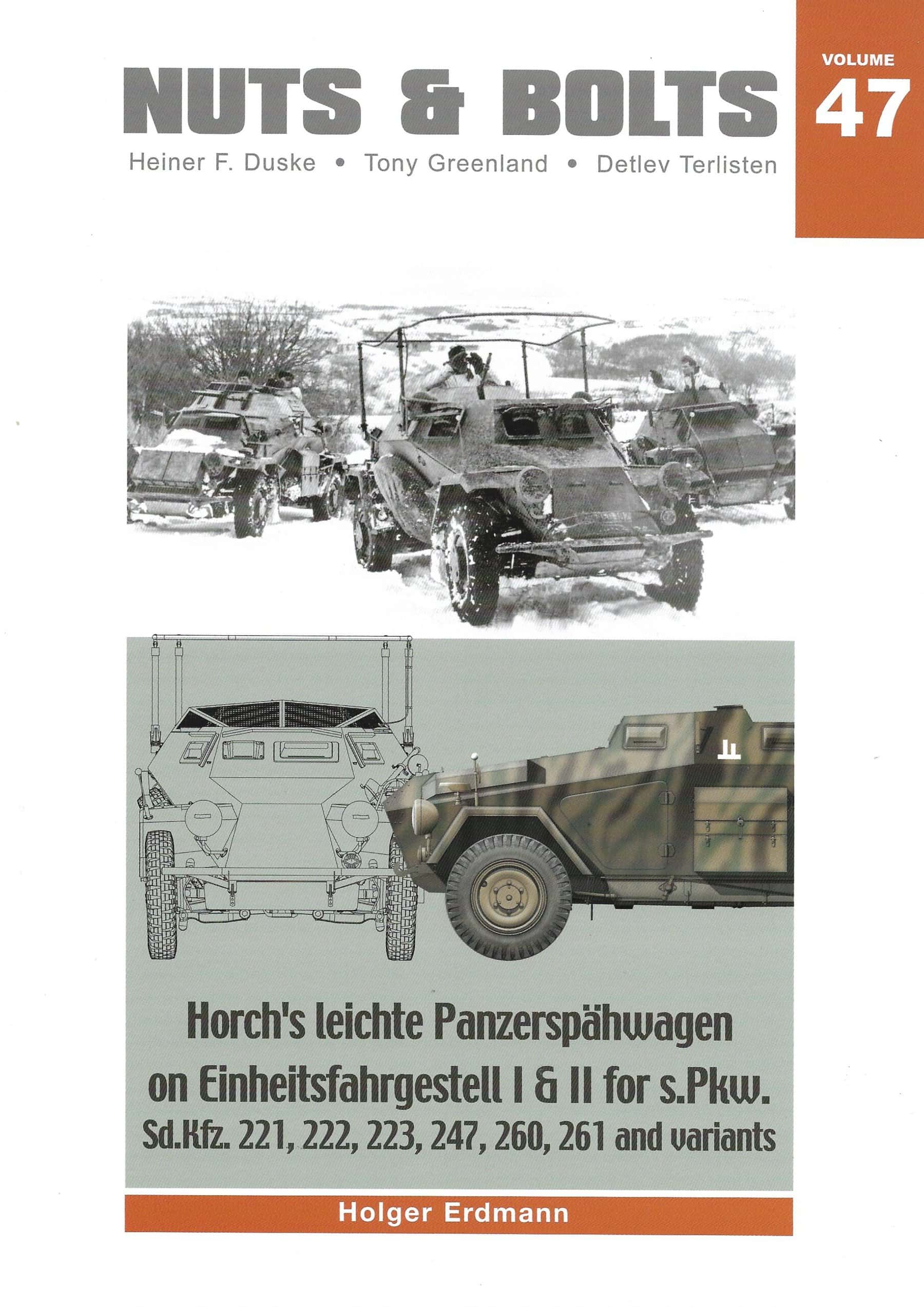 We have therefore decided to take up this topic again and to present all vehicles of the so to speak 2nd generation of these armoured reconnaissance vehicles, i.e. the Sd.Kfz. 221/222/223/247 (4-wheel)/260 and 261 and their known variants by our PanzerspƤhwagen specialist Holger Erdmann. This time also in the meanwhile usual manner with 293 historic photos in bw, 11 tables with technical datas and 151 colour photos of museum vehicles of the types Sd.Kfz. 222 and 223 or their main components, 16 camouflage and markings drawings by Laurent Lecocque; 200 technical drawings and for the first time outlines of all units that have been in service with these vehicle types.