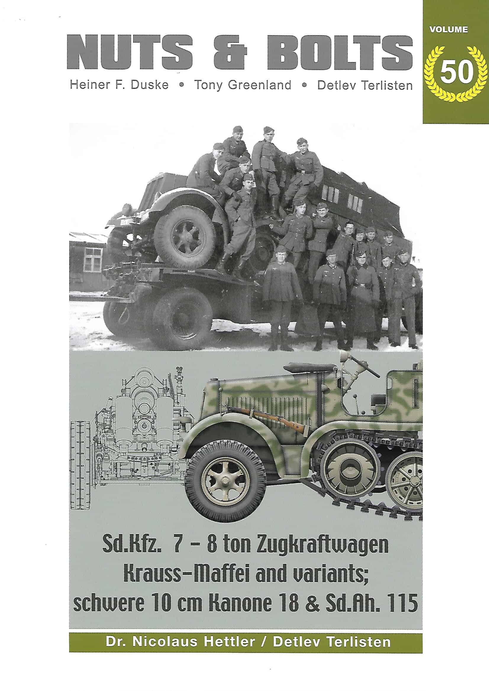 The result is Volume 50, which is almost twice the size of volume 34, with 320 pages, approx. 320 historical photos, approx. 250 photos of vehicles and guns from museums and private collections, 110 technical drawings of the Sd.Kfz 7, the 10 cm schwere Kanone 18 and the Sd.Ah. 115, as well as 20 camouflage schemes based on historical photos of the Sd.Kfz. 7 by Laurent Lecocq. This is supplemented by twelve K.St.N. for the unit types that were equipped with these vehicles and guns.