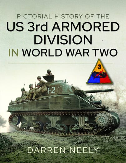 The Third Armored Division, famously known as the “Spearhead Division”, had an illustrious combat career in WW2. One of only two “heavy armored” divisions of the war, the 3rd Armored joined the battle in the ETO in late June of 1944, was bloodied almost immediately and was at the front of the American advance through the hedgerows of Normandy and the rapid advance through France into Belgium by September 1944. The 3rd was one of the first units to breach the vaunted Siegfried Line and then fought a series of back and forth battles with the German army in the Autumn of 1944 as the weather conditions and determined tenacity of the German defenders produced an Autumn stalemate. The 3rd was rushed to the Ardennes front in December of 1944 in response to Hitler’s winter offensive and they famously fought battles at the defense of Hotton, Grandmenil and then pushed the Germans back to the border after vicious battles in places like Ottre, Lierneux, Cherain and Sterpigny. The early days of the Bulge battles would find the lost unit of Col Samuel Hogan’s 400 men who were surrounded for days and fought their way back to friendly lines. After a brief rest and being outfitted with 10 of the T-26 Pershing tanks, the 3rd was at the spearhead of the 1st Army advance into Germany, across the Rhine and into the Harz mountains and the liberation of the Nordhausen concentration camp. This final campaign would see the highpoint of the famous Cologne tank duel between a Pershing and German panther, made famous by the recent book “Spearhead” by Adam Makos. Then, just a few weeks later the beloved commander of the division, Major General Maurice Rose, was tragically shot by a German tank commander when trying to surrender Paderborn, Germany. The 3rd would end the war at the tip of the American advance into Germany before the war ended.