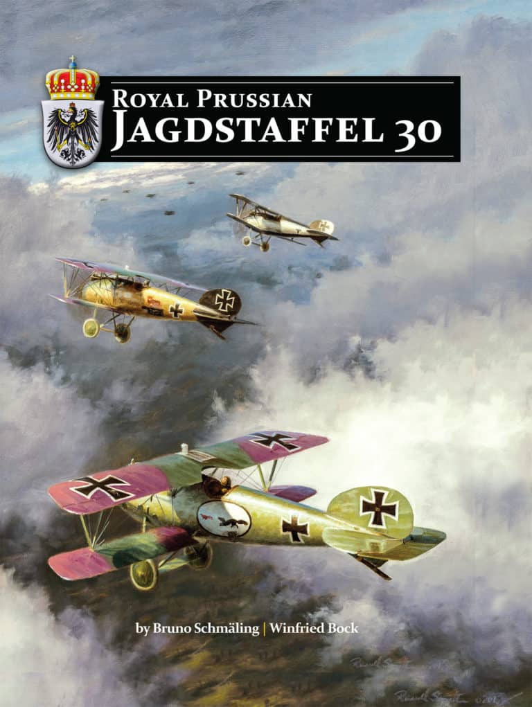 Royal Prussian Jagdstaffel 30 was established December 14, 1916 and allocated to the German 6th Army, facing the British Army Air Service in 1917 and 1918. The unit achieved 64 aerial victories and lost eight pilots in aerial combat; another six died in airplane crashes without enemy involvement. Written by two German authorities in the field of World War I aviation the book presents the detailed and unique history of this German fighter unit. The book is based on interviews with and information from four former members of Jagdstaffel 30 that were done by one of the authors in the 1970s, unpublished German documents, daily German Army Reports of the activity in the air, personal rosters, and information from allied sources. The book also contains a detailed war dairy excerpt and – never published before – the complete logbook of one of the unit’s pilots. The color profiles in the book are based on the recollections of the former members of Jagdstaffel 30, period photographs, and original German documents. These offer an authentic source for enthusiasts and model builders. The book gives a close look to the pilots, their adventures, their personalities, and their dangerous missions. It shows that the young German pilots were far away from the stereotype of the “stiff neck Prussian” and present these young men as they really were. This book is a must for everyone interested in the authentic history of the Great War in the air. Hard bound.